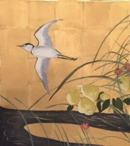 There is a spirituality to Sumi-E painting and all ink wash paintings. In class, we are taught to meditate and “calm” as we grind the sumi stick (ink stick) on the stone to make the black ink. This can take up to 10 minutes while the fragrance of the camphor in the ink stick starts to waft through the air. Yes, I’m serious. It actually smells calming and is quite an aesthetic experience! By the time the ink is made into a creamy black texture, the artist is “at peace in his/her zone” and ready to pick up the brush. The object of painting is to capture the spirit or essence of your subject matter – whether it be a flower, an animal, a bird, or a dancer. When painting a landscape, the artist remembers the feeling of the nature surrounding him/her and what it felt and sounded like to be surrounded by beauty. This “feeling” is then translated into every single stroke of the brush. Talented sumi-e artists are successful when the image they have painted communicates the essence of the subject; versus just the likeness. The goal is for a sense of balance, rhythm and harmony. This is achieved through patience, focus and a LOT of practice! Unlike oil, acrylics and pastels, brush painting is a “one-stroke” art – meaning; you can’t cover your mistakes!