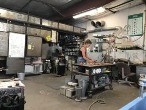 Below are some photos from my wonderful experience at the Liquid Light Glass Factory in Santa Fe, New Mexico – as well as my own paperweight creation.